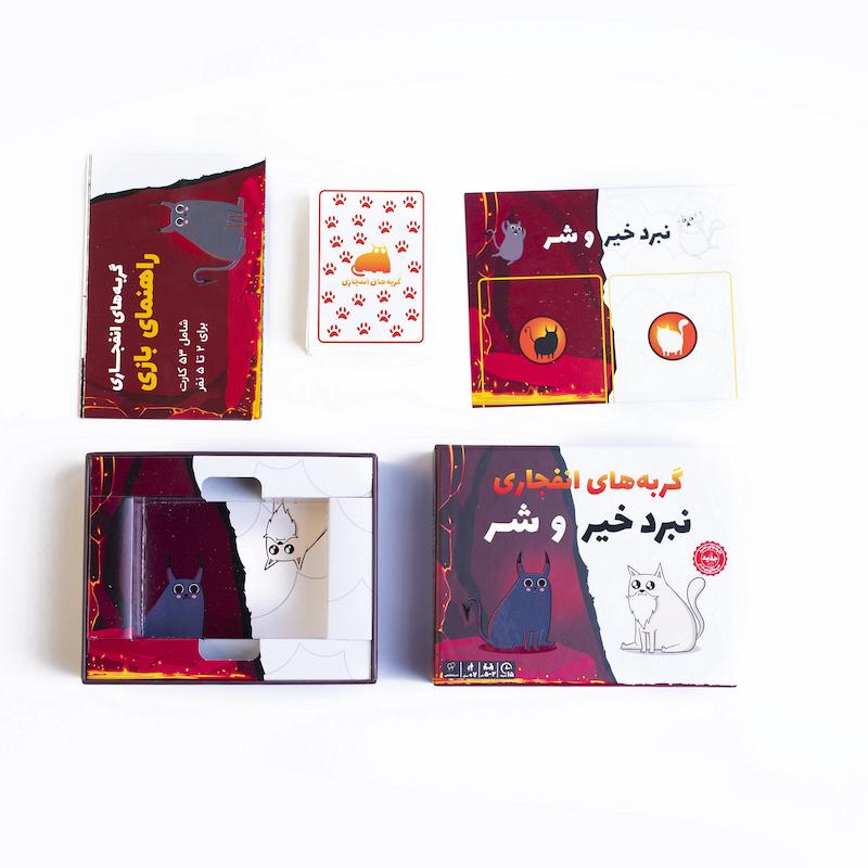 گربههای انفجاری: نبرد خیر و شر ریسکیترین نسخه از بازی گربههای انفجاری است در این بازی کارتها و قوانین جدیدی اضافه شدهاند که نبرد بین بازیکنان را به هیجانانگیزترین اتفاق تاریخ تبدیل میکند. در این بازی شما همان بازی رولت روسی را در قالب بازی کارتی انجام میدهید و باید با هوش و ذکاوت سعی کنید تا رقبایتان را حذف کنید و برنده نبردها باشید. در تمام مدت باید حواستان را جمع کنید که منفجر نشوید! همچنین در این بازی با استفاده از کارتهای رستاخیز یک جریان جدید در بازی آغاز میشود که جنگ بر سر به دست آوردن ارزشمندترین کارتِ سری بازیهای گربههای انفجاری را کلید میزند.