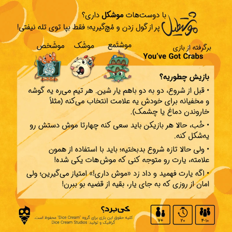 در این بازی به هر بازیکن 4 کارت می رسد.شما کارت های موجود در دست خود را با کارت های موجود وسط میز تعویض خواهید کرد .تا زمانی که شما چهار کارت از یک نوع داشته باشید. سپس، یک سیگنال مخفی را به هم تیمی خود باید ارسال کنید.هم تیمی شما سیگنال را می بیند و فریاد می زند که سیگنال را دریافت نموده است .